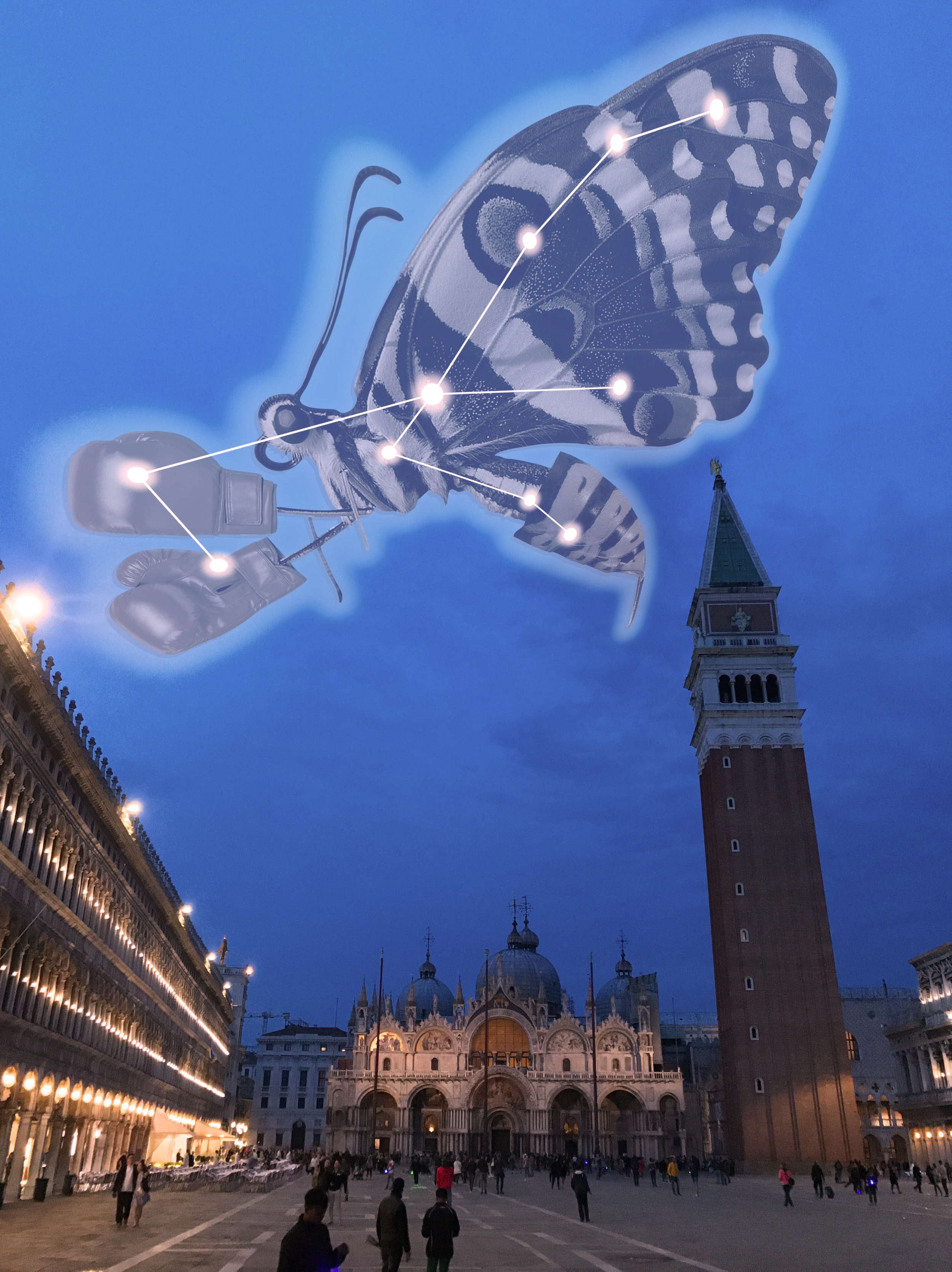 Richard Humann • Ascension (The Butterfly Bee) installed over Venice, Italy • 2017 Venice Biennale