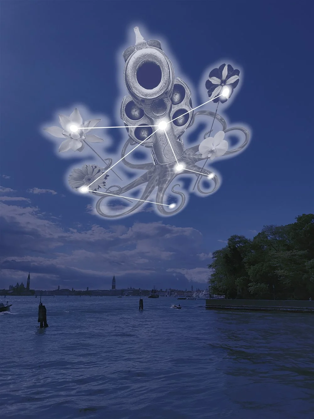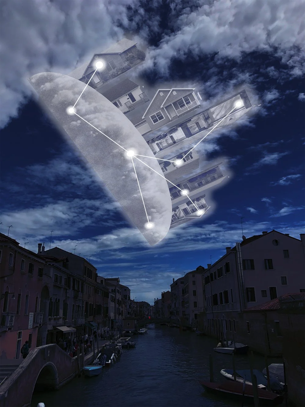 Richard Humann • Ascension (The Shining Suburb On The Hill) installed over Venice, Italy • 2017 Venice Biennale